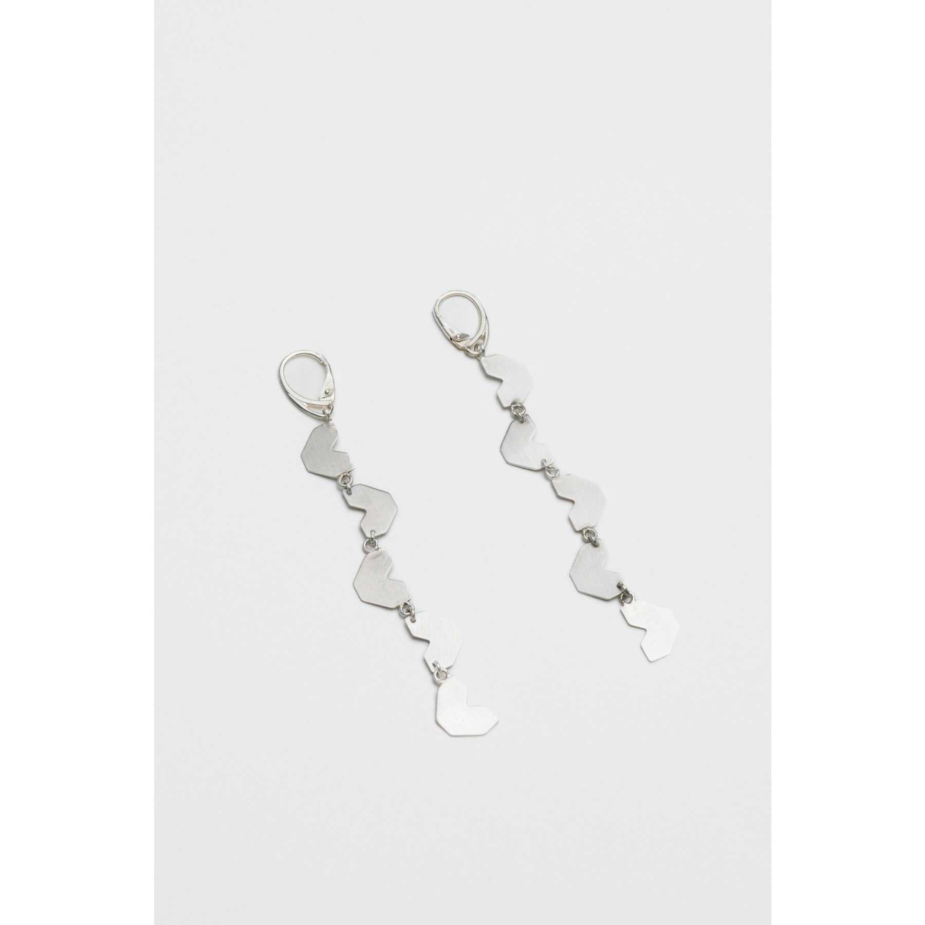 These heart-shaped earrings are a very special gift. For you or someone dear to you - because they have a symbolic value and will always remind you that you've laid bricks for something meaningful. 100% of the funds go to #WeBuildAHospital! They are made by MONOM exclusively for Give Life. The earrings have five square hearts each, reach the level of the collarbone, and are made of 925 silver covered in an anti-tarnish coating. The pieces are handmade and the small imperfections make each piece unique.