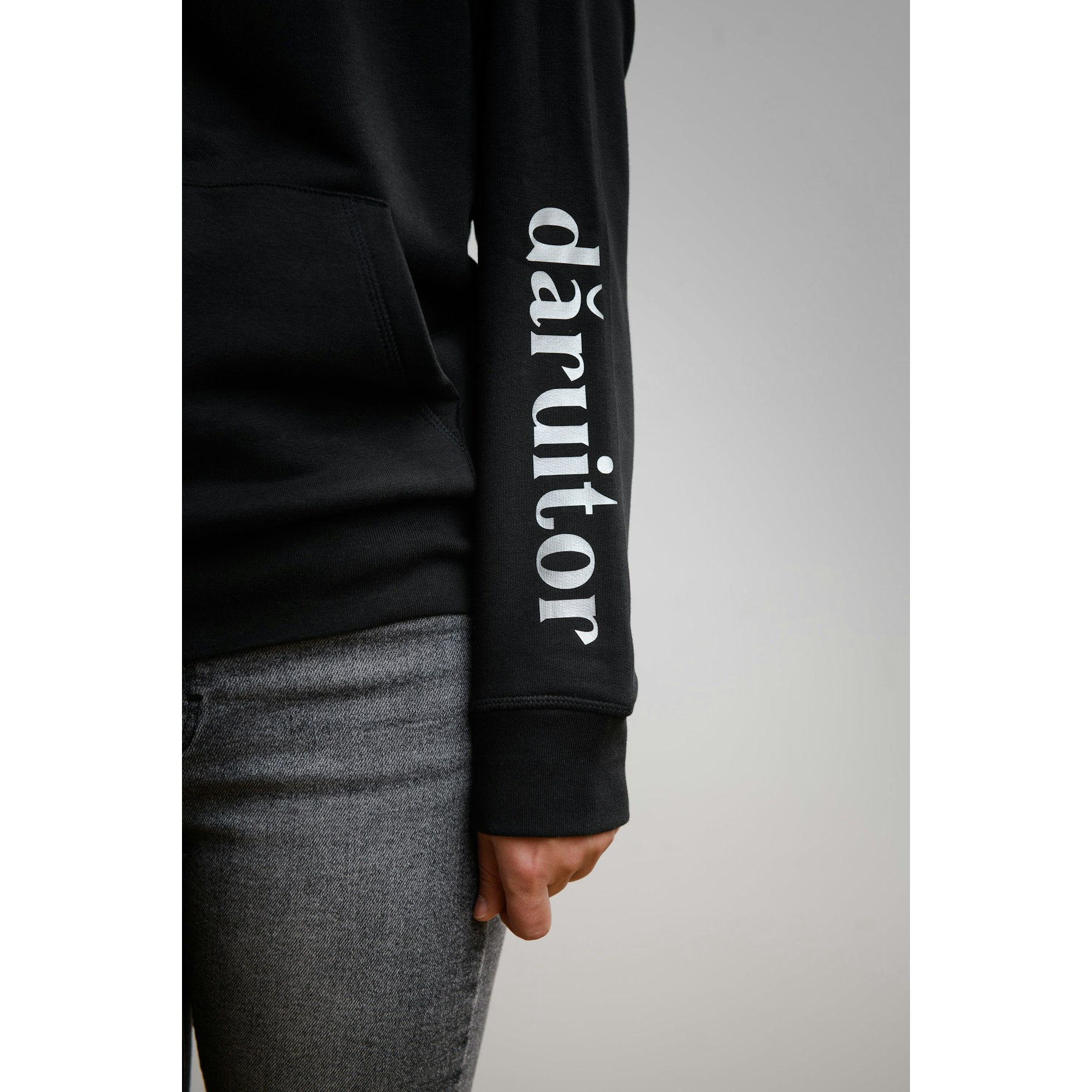 Introducing the solidarity hoodie. We call it that because the DV Logo has become synonymous with the solidarity of hundreds of thousands of people who together are building a hospital. Wear it with pride and your gesture will inspire others to help, so that together we can move the project forward. (black and silver DV hoodie - 100% organic cotton)