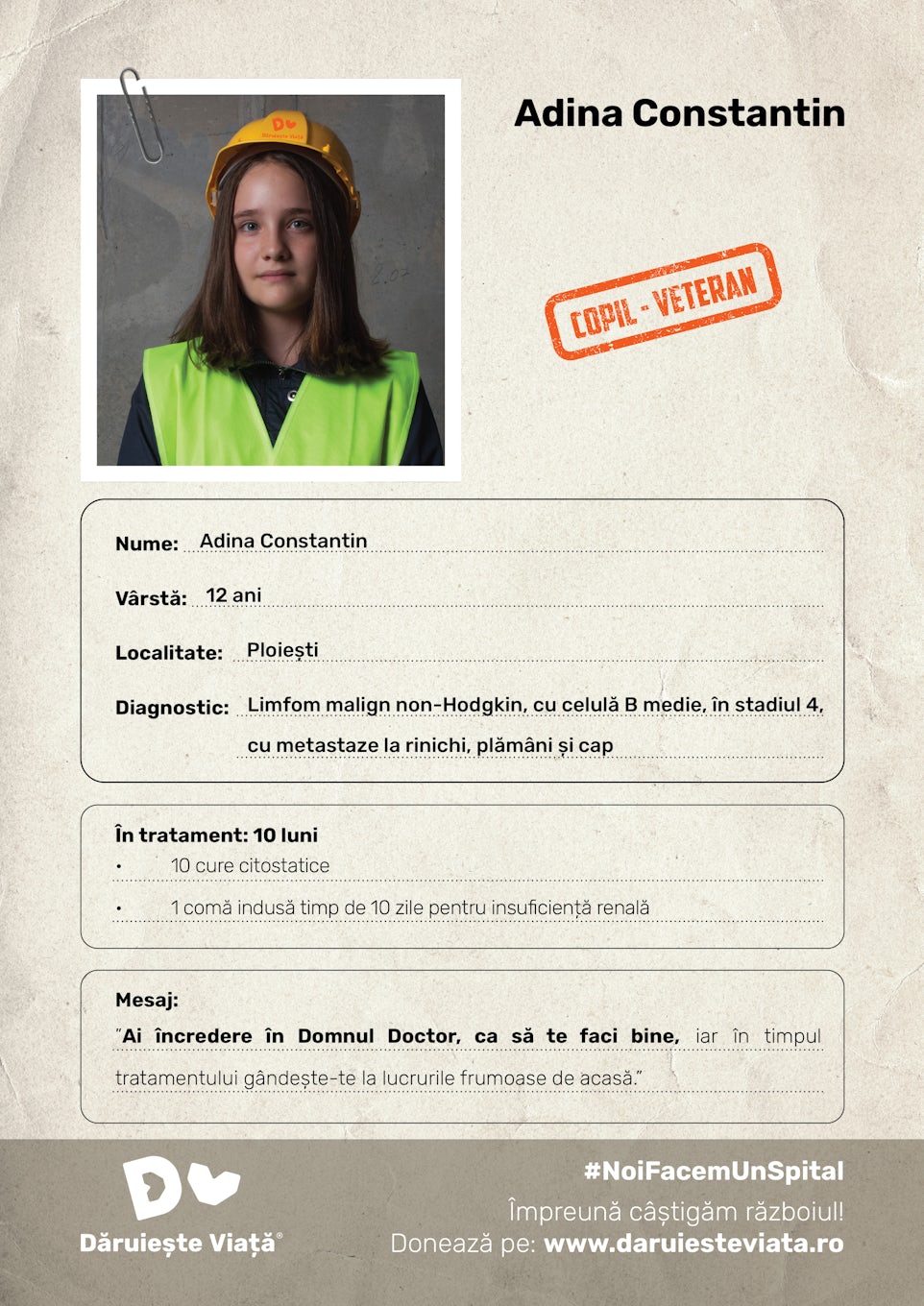 Adina a 11 ans et elle a déjà mené la plus difficile bataille: celle avec un lymphome malin non-hodgkinien.